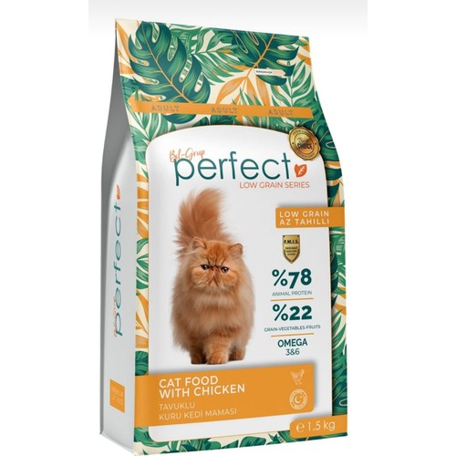 PerfectTavuklu Yetişkin kedi maması kediniz hangi cins olursa olsun çok severek yiyeceği bir mamadır. Sıvılaştırılmış Taze Et Enjeksiyon Sistemi (FMIS) kullanılarak üretilmiştir. En yüksek kalitede taze tavuk, kurutulmuş tavuk, kurutulmuş sebze ve meyvelerin yanı sıra zengin destekleyici ürünler ile hazırlanmış mükemmel bir kuru mamadır.